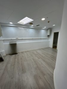 Distribución: Gran sala principal diáfana Zonas de almacén Baños al fondo del local